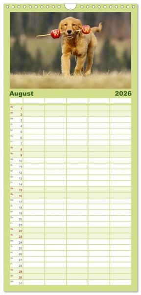 er mit 5 Spalten für bis zu 5 Personen für mehr Struktur im Alltag - so bleiben alle Termine im Blick!ÜBERSICHTLICH - mit farblich getrennten Wochen- und Feiertagen. Die einzelnen Felder bieten genügend Platz für Eintragungen. So macht Organisieren Spaß!FANTASTISCHE BILDER - Dieser Planer ist nicht nur eine nützliche Hilfe im Alltag, sondern schmückt gleichzeitig Ihr Zuhause. Ideal auch als Geschenk.FÜR ALLE STIFTE GEEIGNET - ganz egal, ob Sie lieber mit Kugelschreiber oder Bleistift schreiben.NACHHALTIG - deutliche Abfallreduzierung durch bedarfsgerechte Einzelstückfertigung, umweltfreundliches FSC-zertifiziertes Papier, Produktion in Deutschland, klimabewusste Logistik.Fröhlicher Wald und Wiesen Streifzug eines Golden Retriever Welpen von Autor(in): Beam