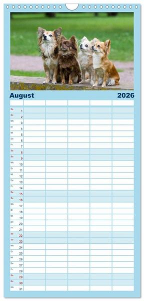 kalender mit 5 Spalten für bis zu 5 Personen für mehr Struktur im Alltag - so bleiben alle Termine im Blick!ÜBERSICHTLICH - mit farblich getrennten Wochen- und Feiertagen. Die einzelnen Felder bieten genügend Platz für Eintragungen. So macht Organisieren Spaß!FANTASTISCHE BILDER - Dieser Planer ist nicht nur eine nützliche Hilfe im Alltag, sondern schmückt gleichzeitig Ihr Zuhause. Ideal auch als Geschenk.FÜR ALLE STIFTE GEEIGNET - ganz egal, ob Sie lieber mit Kugelschreiber oder Bleistift schreiben.NACHHALTIG - deutliche Abfallreduzierung durch bedarfsgerechte Einzelstückfertigung, umweltfreundliches FSC-zertifiziertes Papier, Produktion in Deutschland, klimabewusste Logistik.Wunderschöne Outdoor Fotos der kleinen Hunderasse von Autor(in): Fotodesign Verena Scholze