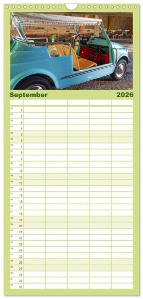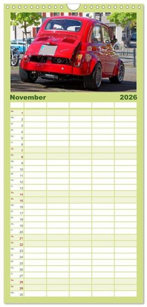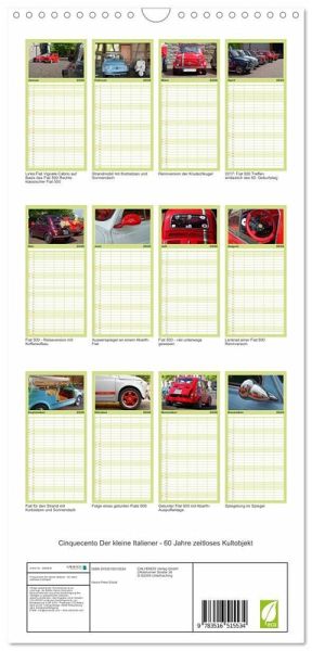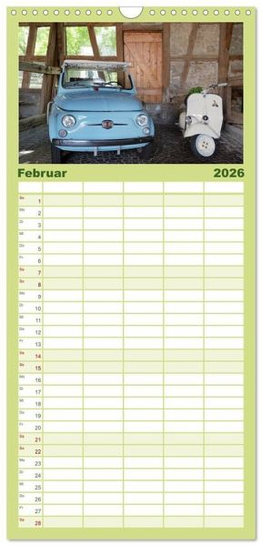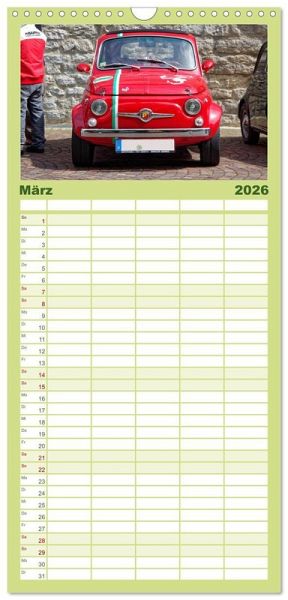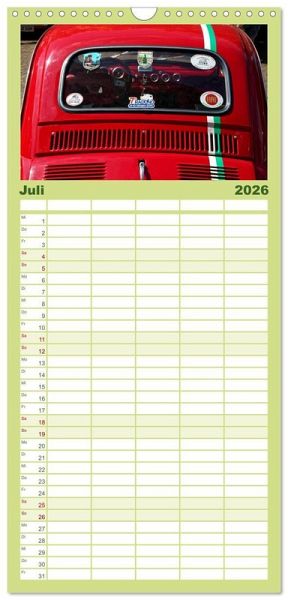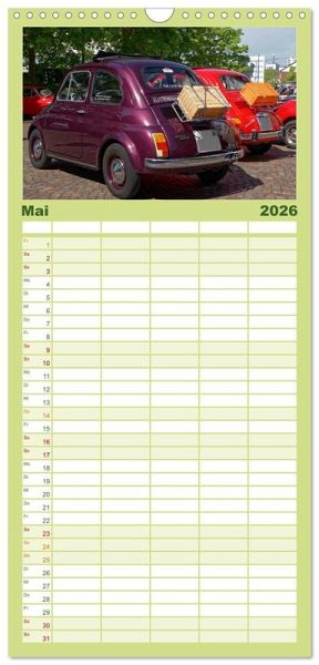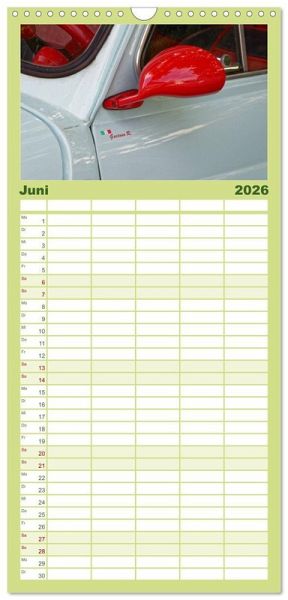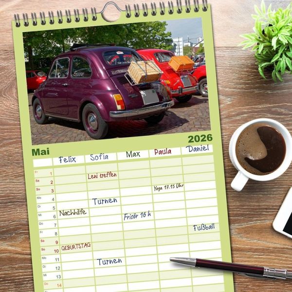 PRAKTISCH - übersichtlicher Familienkalender mit 5 Spalten für bis zu 5 Personen für mehr Struktur im Alltag - so bleiben alle Termine im Blick!ÜBERSICHTLICH - mit farblich getrennten Wochen- und Feiertagen. Die einzelnen Felder bieten genügend Platz für Eintragungen. So macht Organisieren Spaß!FANTASTISCHE BILDER - Dieser Planer ist nicht nur eine nützliche Hilfe im Alltag, sondern schmückt gleichzeitig Ihr Zuhause. Ideal auch als Geschenk.FÜR ALLE STIFTE GEEIGNET - ganz egal, ob Sie lieber mit Kugelschreiber oder Bleistift schreiben.NACHHALTIG- deutliche Abfallreduzierung durch bedarfsgerechte Einzelstückfertigung, umweltfreundliches FSC-zertifiziertes Papier, Produktion in Deutschland, klimabewusste Logistik.Fiat 500 - geliebte "Knutschkugel" von Autor(in): Hanns-Peter Eisold