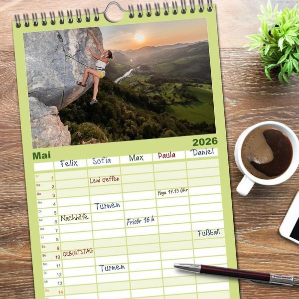PRAKTISCH - übersichtlicher Familienkalender mit 5 Spalten für bis zu 5 Personen für mehr Struktur im Alltag - so bleiben alle Termine im Blick!ÜBERSICHTLICH - mit farblich getrennten Wochen- und Feiertagen. Die einzelnen Felder bieten genügend Platz für Eintragungen. So macht Organisieren Spaß!FANTASTISCHE BILDER - Dieser Planer ist nicht nur eine nützliche Hilfe im Alltag, sondern schmückt gleichzeitig Ihr Zuhause. Ideal auch als Geschenk.FÜR ALLE STIFTE GEEIGNET - ganz egal, ob Sie lieber mit Kugelschreiber oder Bleistift schreiben.NACHHALTIG - deutliche Abfallreduzierung durch bedarfsgerechte Einzelstückfertigung, umweltfreundliches FSC-zertifiziertes Papier, Produktion in Deutschland, klimabewusste Logistik.Einmalige Augenblicke von den Felsen und Bergender Welt von Autor(in): Stefan Brunner