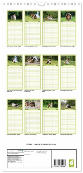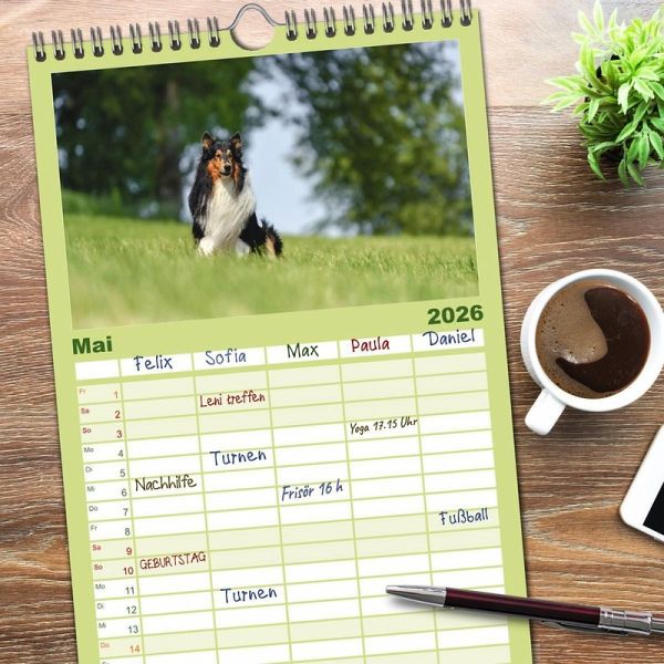 PRAKTISCH - übersichtlicher Familienkalender mit 5 Spalten für bis zu 5 Personen für mehr Struktur im Alltag - so bleiben alle Termine im Blick!ÜBERSICHTLICH - mit farblich getrennten Wochen- und Feiertagen. Die einzelnen Felder bieten genügend Platz für Eintragungen. So macht Organisieren Spaß!FANTASTISCHE BILDER - Dieser Planer ist nicht nur eine nützliche Hilfe im Alltag, sondern schmückt gleichzeitig Ihr Zuhause. Ideal auch als Geschenk.FÜR ALLE STIFTE GEEIGNET - ganz egal, ob Sie lieber mit Kugelschreiber oder Bleistift schreiben.NACHHALTIG - deutliche Abfallreduzierung durch bedarfsgerechte Einzelstückfertigung, umweltfreundliches FSC-zertifiziertes Papier, Produktion in Deutschland, klimabewusste Logistik.Elegant, aufmerksam und sensibel - der Collie vereint Schönheit mit Verstand und Herz von Autor(in): Yvonne Janetzek