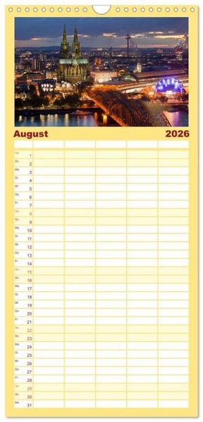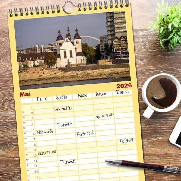 TISCH - übersichtlicher Familienkalender mit 5 Spalten für bis zu 5 Personen für mehr Struktur im Alltag - so bleiben alle Termine im Blick!ÜBERSICHTLICH - mit farblich getrennten Wochen- und Feiertagen. Die einzelnen Felder bieten genügend Platz für Eintragungen. So macht Organisieren Spaß!FANTASTISCHE BILDER - Dieser Planer ist nicht nur eine nützliche Hilfe im Alltag, sondern schmückt gleichzeitig Ihr Zuhause. Ideal auch als Geschenk.FÜR ALLE STIFTE GEEIGNET - ganz egal, ob Sie lieber mit Kugelschreiber oder Bleistift schreiben.NACHHALTIG - deutliche Abfallreduzierung durch bedarfsgerechte Einzelstückfertigung, umweltfreundliches FSC-zertifiziertes Papier, Produktion in Deutschland, klimabewusste Logistik.Die spektakuläre Großstadt am Rhein in NRW. von Autor(in): Peter Schickert