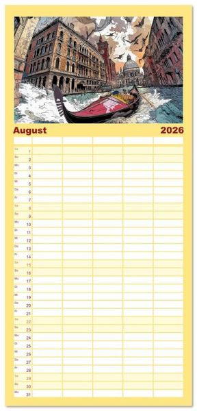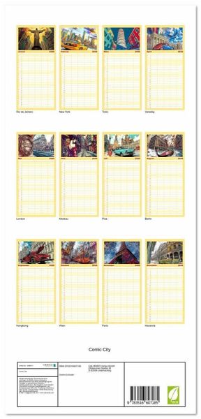 PRAKTISCH - übersichtlicher Familienkalender mit 5 Spalten für bis zu 5 Personen für mehr Struktur im Alltag - so bleiben alle Termine im Blick!ÜBERSICHTLICH - mit farblich getrennten Wochen- und Feiertagen. Die einzelnen Felder bieten genügend Platz für Eintragungen. So macht Organisieren Spaß!FANTASTISCHE BILDER - Dieser Planer ist nicht nur eine nützliche Hilfe im Alltag, sondern schmückt gleichzeitig Ihr Zuhause. Ideal auch als Geschenk.FÜR ALLE STIFTE GEEIGNET - ganz egal, ob Sie lieber mit Kugelschreiber oder Bleistift schreiben.NACHHALTIG - deutliche Abfallreduzierung durch bedarfsgerechte Einzelstückfertigung, umweltfreundliches FSC-zertifiziertes Papier, Produktion in Deutschland, klimabewusste Logistik.Internationale Städte im Comic Style von Autor(in): Charles Schrader
