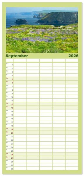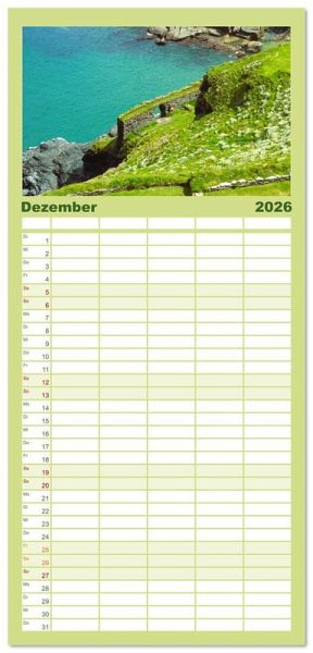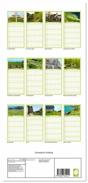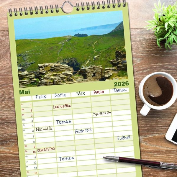 ten für bis zu 5 Personen für mehr Struktur im Alltag - so bleiben alle Termine im Blick!ÜBERSICHTLICH - mit farblich getrennten Wochen- und Feiertagen. Die einzelnen Felder bieten genügend Platz für Eintragungen. So macht Organisieren Spaß!FANTASTISCHE BILDER - Dieser Planer ist nicht nur eine nützliche Hilfe im Alltag, sondern schmückt gleichzeitig Ihr Zuhause. Ideal auch als Geschenk.FÜR ALLE STIFTE GEEIGNET - ganz egal, ob Sie lieber mit Kugelschreiber oder Bleistift schreiben.NACHHALTIG - deutliche Abfallreduzierung durch bedarfsgerechte Einzelstückfertigung, umweltfreundliches FSC-zertifiziertes Papier, Produktion in Deutschland, klimabewusste Logistik.Eine bildgewaltige Reise durch das frühlingshafte Cornwall von Autor(in): p.h.