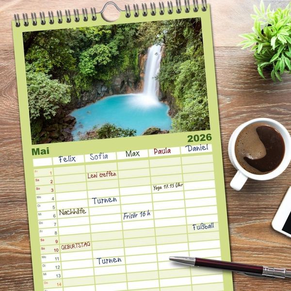 PRAKTISCH - übersichtlicher Familienkalender mit 5 Spalten für bis zu 5 Personen für mehr Struktur im Alltag - so bleiben alle Termine im Blick!ÜBERSICHTLICH - mit farblich getrennten Wochen- und Feiertagen. Die einzelnen Felder bieten genügend Platz für Eintragungen. So macht Organisieren Spaß!FANTASTISCHE BILDER - Dieser Planer ist nicht nur eine nützliche Hilfe im Alltag, sondern schmückt gleichzeitig Ihr Zuhause. Ideal auch als Geschenk.FÜR ALLE STIFTE GEEIGNET - ganz egal, ob Sie lieber mit Kugelschreiber oder Bleistift schreiben.NACHHALTIG - deutliche Abfallreduzierung durch bedarfsgerechte Einzelstückfertigung, umweltfreundliches FSC-zertifiziertes Papier, Produktion in Deutschland, klimabewusste Logistik.Bunte Naturwunder aus Mittelamerika von Autor(in): Matteo Colombo