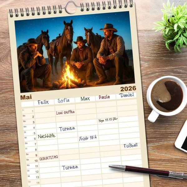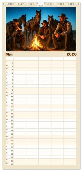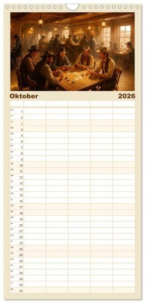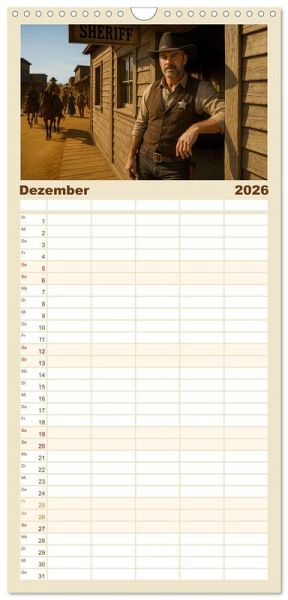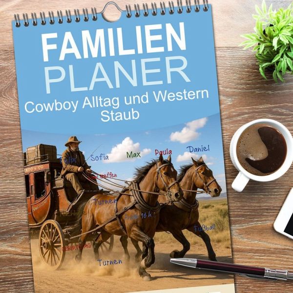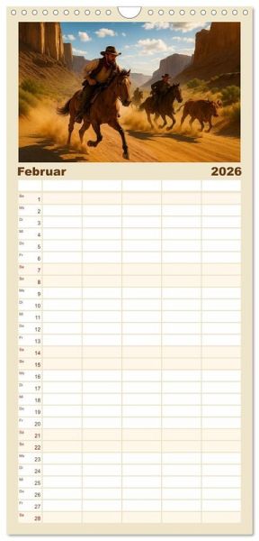 PRAKTISCH - übersichtlicher Familienkalender mit 5 Spalten für bis zu 5 Personen für mehr Struktur im Alltag - so bleiben alle Termine im Blick!ÜBERSICHTLICH - mit farblich getrennten Wochen- und Feiertagen. Die einzelnen Felder bieten genügend Platz für Eintragungen. So macht Organisieren Spaß!FANTASTISCHE BILDER - Dieser Planer ist nicht nur eine nützliche Hilfe im Alltag, sondern schmückt gleichzeitig Ihr Zuhause. Ideal auch als Geschenk.FÜR ALLE STIFTE GEEIGNET - ganz egal, ob Sie lieber mit Kugelschreiber oder Bleistift schreiben.NACHHALTIG - deutliche Abfallreduzierung durch bedarfsgerechte Einzelstückfertigung, umweltfreundliches FSC-zertifiziertes Papier, Produktion in Deutschland, klimabewusste Logistik.Ikonische Wildwest-Romantik in Bildern, die den Geist des Abenteuers atmen. von Autor(in): Kerstin Waurick