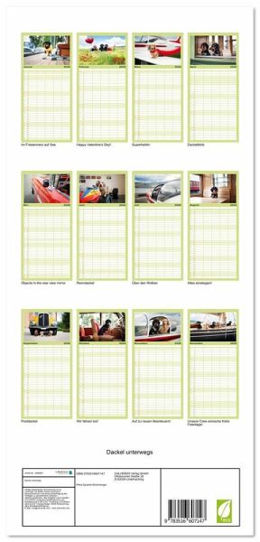PRAKTISCH - übersichtlicher Familienkalender mit 5 Spalten für bis zu 5 Personen für mehr Struktur im Alltag - so bleiben alle Termine im Blick!ÜBERSICHTLICH - mit farblich getrennten Wochen- und Feiertagen. Die einzelnen Felder bieten genügend Platz für Eintragungen. So macht Organisieren Spaß!FANTASTISCHE BILDER - Dieser Planer ist nicht nur eine nützliche Hilfe im Alltag, sondern schmückt gleichzeitig Ihr Zuhause. Ideal auch als Geschenk.FÜR ALLE STIFTE GEEIGNET - ganz egal, ob Sie lieber mit Kugelschreiber oder Bleistift schreiben.NACHHALTIG - deutliche Abfallreduzierung durch bedarfsgerechte Einzelstückfertigung, umweltfreundliches FSC-zertifiziertes Papier, Produktion in Deutschland, klimabewusste Logistik.Dackel auf Reisen zu Lande,zu Wasser und in der Luft! von Autor(in): Ulrike Köser