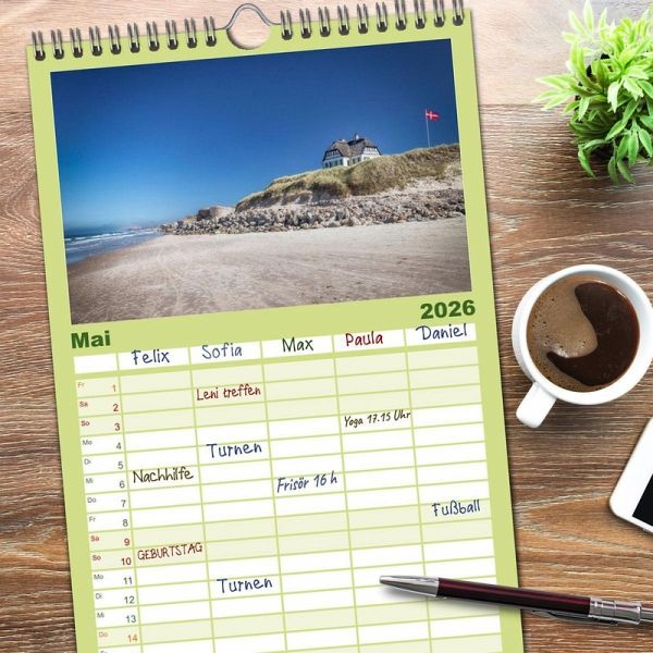 rsichtlicher Familienkalender mit 5 Spalten für bis zu 5 Personen für mehr Struktur im Alltag - so bleiben alle Termine im Blick!ÜBERSICHTLICH - mit farblich getrennten Wochen- und Feiertagen. Die einzelnen Felder bieten genügend Platz für Eintragungen. So macht Organisieren Spaß!FANTASTISCHE BILDER - Dieser Planer ist nicht nur eine nützliche Hilfe im Alltag, sondern schmückt gleichzeitig Ihr Zuhause. Ideal auch als Geschenk.FÜR ALLE STIFTE GEEIGNET - ganz egal, ob Sie lieber mit Kugelschreiber oder Bleistift schreiben.NACHHALTIG - deutliche Abfallreduzierung durch bedarfsgerechte Einzelstückfertigung, umweltfreundliches FSC-zertifiziertes Papier, Produktion in Deutschland, klimabewusste Logistik.Die Westküste Dänemarks entlang von Hvide Sande bis Skagen. von Autor(in): Martin Winzer