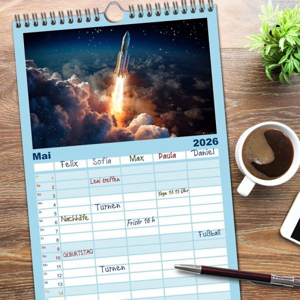 PRAKTISCH - übersichtlicher Familienkalender mit 5 Spalten für bis zu 5 Personen für mehr Struktur im Alltag - so bleiben alle Termine im Blick!ÜBERSICHTLICH - mit farblich getrennten Wochen- und Feiertagen. Die einzelnen Felder bieten genügend Platz für Eintragungen. So macht Organisieren Spaß!FANTASTISCHE BILDER - Dieser Planer ist nicht nur eine nützliche Hilfe im Alltag, sondern schmückt gleichzeitig Ihr Zuhause. Ideal auch als Geschenk.FÜR ALLE STIFTE GEEIGNET - ganz egal, ob Sie lieber mit Kugelschreiber oder Bleistift schreiben.NACHHALTIG - deutliche Abfallreduzierung durch bedarfsgerechte Einzelstückfertigung, umweltfreundliches FSC-zertifiziertes Papier, Produktion in Deutschland, klimabewusste Logistik.Wie in den Jahren der Raumfahrt und doch ganz anders von Autor(in): Kerstin Waurick
