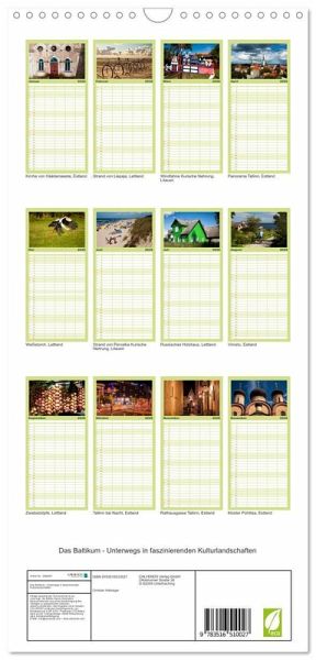 PRAKTISCH - übersichtlicher Familienkalender mit 5 Spalten für bis zu 5 Personen für mehr Struktur im Alltag - so bleiben alle Termine im Blick!ÜBERSICHTLICH - mit farblich getrennten Wochen- und Feiertagen. Die einzelnen Felder bieten genügend Platz für Eintragungen. So macht Organisieren Spaß!FANTASTISCHE BILDER - Dieser Planer ist nicht nur eine nützliche Hilfe im Alltag, sondern schmückt gleichzeitig Ihr Zuhause. Ideal auch als Geschenk.FÜR ALLE STIFTE GEEIGNET - ganz egal, ob Sie lieber mit Kugelschreiber oder Bleistift schreiben.NACHHALTIG - deutliche Abfallreduzierung durch bedarfsgerechte Einzelstückfertigung, umweltfreundliches FSC-zertifiziertes Papier, Produktion in Deutschland, klimabewusste Logistik.Bilder einer Reise zu den faszinierenden Kulturlandschaften der drei Baltikum-Staaten Estland, Lettland und Litauen von Autor(in): Christian Hallweger