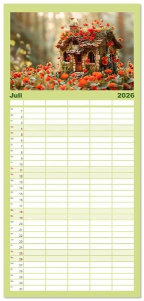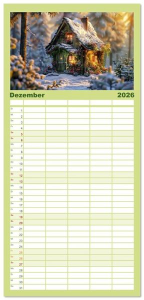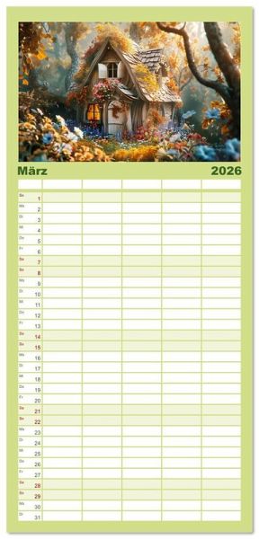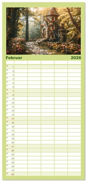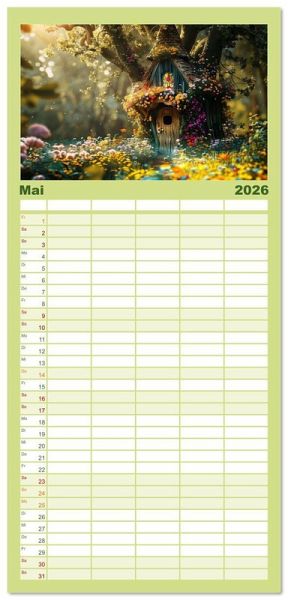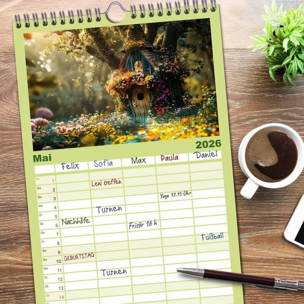 PRAKTISCH - übersichtlicher Familienkalender mit 5 Spalten für bis zu 5 Personen für mehr Struktur im Alltag - so bleiben alle Termine im Blick!ÜBERSICHTLICH - mit farblich getrennten Wochen- und Feiertagen. Die einzelnen Felder bieten genügend Platz für Eintragungen. So macht Organisieren Spaß!FANTASTISCHE BILDER - Dieser Planer ist nicht nur eine nützliche Hilfe im Alltag, sondern schmückt gleichzeitig Ihr Zuhause. Ideal auch als Geschenk.FÜR ALLE STIFTE GEEIGNET - ganz egal, ob Sie lieber mit Kugelschreiber oder Bleistift schreiben.NACHHALTIG - deutliche Abfallreduzierung durch bedarfsgerechte Einzelstückfertigung, umweltfreundliches FSC-zertifiziertes Papier, Produktion in Deutschland, klimabewusste Logistik.Naturverbunden und magisch von Autor(in): Daniela Tapper