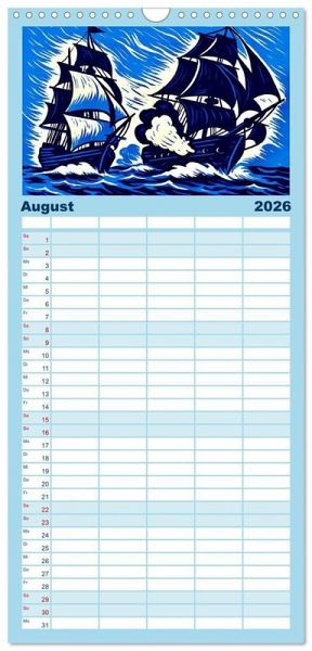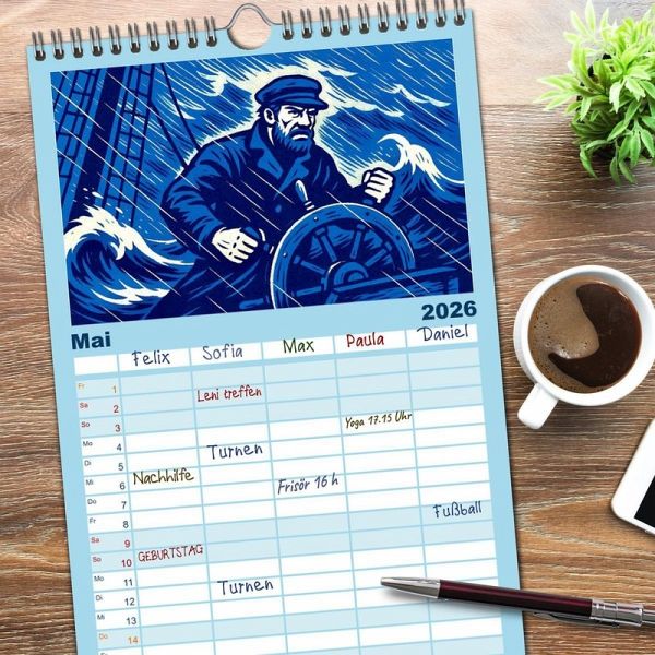 PRAKTISCH - übersichtlicher Familienkalender mit 5 Spalten für bis zu 5 Personen für mehr Struktur im Alltag - so bleiben alle Termine im Blick!ÜBERSICHTLICH - mit farblich getrennten Wochen- und Feiertagen. Die einzelnen Felder bieten genügend Platz für Eintragungen. So macht Organisieren Spaß!FANTASTISCHE BILDER - Dieser Planer ist nicht nur eine nützliche Hilfe im Alltag, sondern schmückt gleichzeitig Ihr Zuhause. Ideal auch als Geschenk.FÜR ALLE STIFTE GEEIGNET - ganz egal, ob Sie lieber mit Kugelschreiber oder Bleistift schreiben.NACHHALTIG - deutliche Abfallreduzierung durch bedarfsgerechte Einzelstückfertigung, umweltfreundliches FSC-zertifiziertes Papier, Produktion in Deutschland, klimabewusste Logistik.Ein Rausch in Blau: Alte maritime Romane neu illustriert von Autor(in): Steffani Lehmann