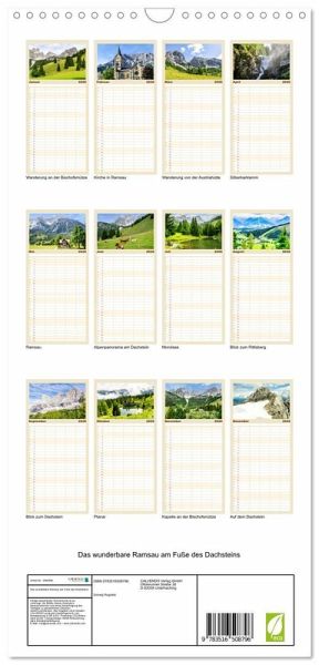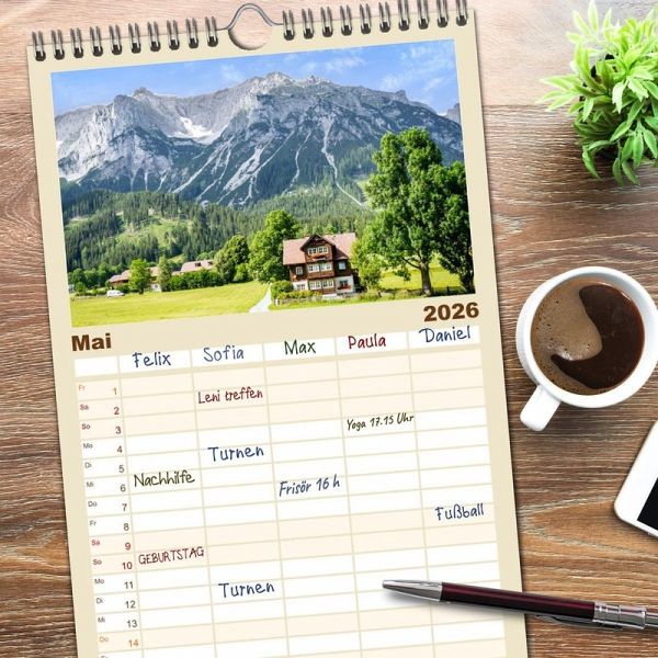 PRAKTISCH - übersichtlicher Familienkalender mit 5 Spalten für bis zu 5 Personen für mehr Struktur im Alltag - so bleiben alle Termine im Blick!ÜBERSICHTLICH - mit farblich getrennten Wochen- und Feiertagen. Die einzelnen Felder bieten genügend Platz für Eintragungen. So macht Organisieren Spaß!FANTASTISCHE BILDER - Dieser Planer ist nicht nur eine nützliche Hilfe im Alltag, sondern schmückt gleichzeitig Ihr Zuhause. Ideal auch als Geschenk.FÜR ALLE STIFTE GEEIGNET - ganz egal, ob Sie lieber mit Kugelschreiber oder Bleistift schreiben.NACHHALTIG - deutliche Abfallreduzierung durch bedarfsgerechte Einzelstückfertigung, umweltfreundliches FSC-zertifiziertes Papier, Produktion in Deutschland, klimabewusste Logistik.Das wunderbare Almengebiet Ramsau am Fuße des imposanten Dachsteins bietet viele Rundwandermöglichkeiten. von Autor(in): Solveig Rogalski