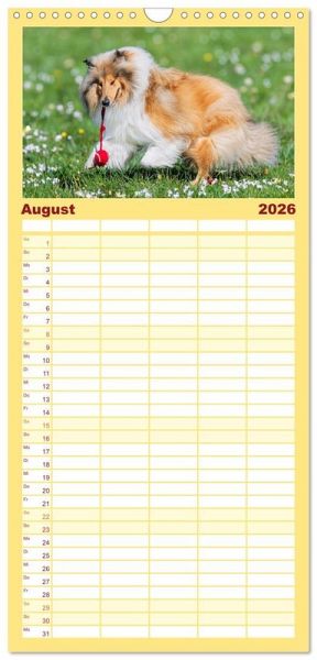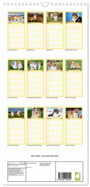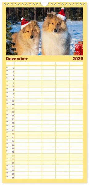 PRAKTISCH - übersichtlicher Familienkalender mit 5 Spalten für bis zu 5 Personen für mehr Struktur im Alltag - so bleiben alle Termine im Blick!ÜBERSICHTLICH - mit farblich getrennten Wochen- und Feiertagen. Die einzelnen Felder bieten genügend Platz für Eintragungen. So macht Organisieren Spaß!FANTASTISCHE BILDER - Dieser Planer ist nicht nur eine nützliche Hilfe im Alltag, sondern schmückt gleichzeitig Ihr Zuhause. Ideal auch als Geschenk.FÜR ALLE STIFTE GEEIGNET - ganz egal, ob Sielieber mit Kugelschreiber oder Bleistift schreiben.NACHHALTIG - deutliche Abfallreduzierung durch bedarfsgerechte Einzelstückfertigung, umweltfreundliches FSC-zertifiziertes Papier, Produktion in Deutschland, klimabewusste Logistik.13 wundervolle Fotos der Fotografin Sigrid Starick von bezaubernden Collies begleiten und durch das Jahr von Autor(in): SiSta-Tierfoto