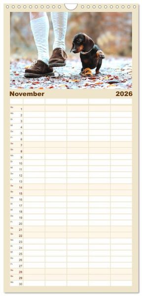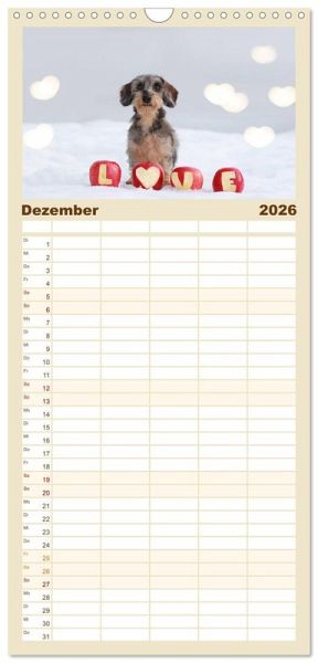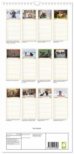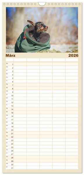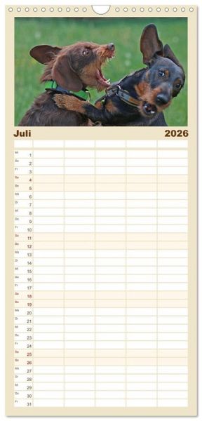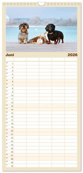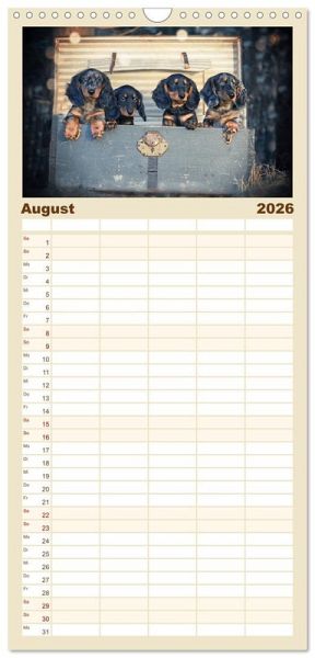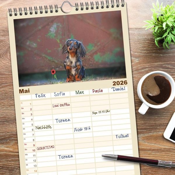 PRAKTISCH - übersichtlicher Familienkalender mit 5 Spalten für bis zu 5 Personen für mehr Struktur im Alltag - so bleiben alle Termine im Blick!ÜBERSICHTLICH - mit farblich getrennten Wochen- und Feiertagen. Die einzelnen Felder bieten genügend Platz für Eintragungen. So macht Organisieren Spaß!FANTASTISCHE BILDER - Dieser Planer ist nicht nur eine nützliche Hilfe im Alltag, sondern schmückt gleichzeitig Ihr Zuhause. Ideal auch als Geschenk.FÜR ALLE STIFTE GEEIGNET - ganz egal, ob Sie lieber mit Kugelschreiber oder Bleistift schreiben.NACHHALTIG - deutliche Abfallreduzierung durch bedarfsgerechte Einzelstückfertigung, umweltfreundliches FSC-zertifiziertes Papier, Produktion in Deutschland, klimabewusste Logistik.Der Dackel - kleiner Hund, großes Herz, riesengroße Ausstrahlung und ein Blick, den nur der Dackel kann. von Autor(in): Anja Foto Grafia Fotografie