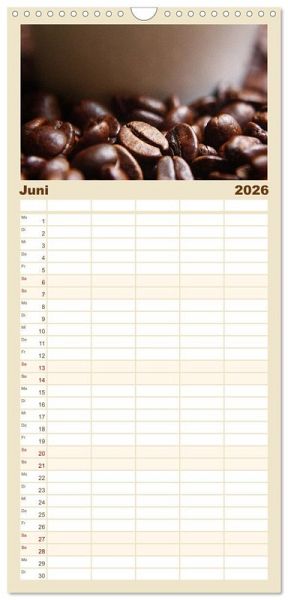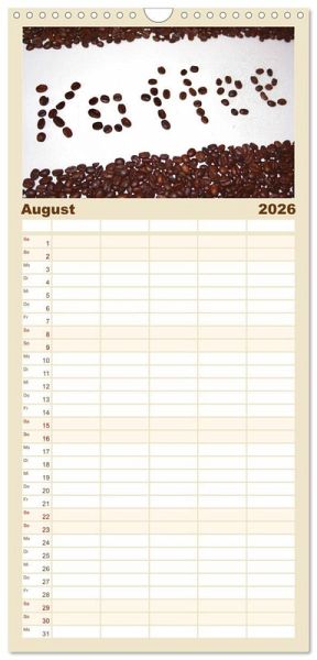 im Alltag - so bleiben alle Termine im Blick!ÜBERSICHTLICH - mit farblich getrennten Wochen- und Feiertagen. Die einzelnen Felder bieten genügend Platz für Eintragungen. So macht Organisieren Spaß!FANTASTISCHE BILDER - Dieser Planer ist nicht nur eine nützliche Hilfe im Alltag, sondern schmückt gleichzeitig Ihr Zuhause. Ideal auch als Geschenk.FÜR ALLE STIFTE GEEIGNET - ganz egal, ob Sie lieber mit Kugelschreiber oder Bleistift schreiben.NACHHALTIG - deutliche Abfallreduzierung durch bedarfsgerechte Einzelstückfertigung, umweltfreundliches FSC-zertifiziertes Papier, Produktion in Deutschland, klimabewusste Logistik.Ein Kalender mit anregenden Kaffeebildern voller Genuss. von Autor(in): Lilo Kapp