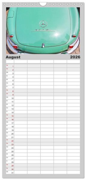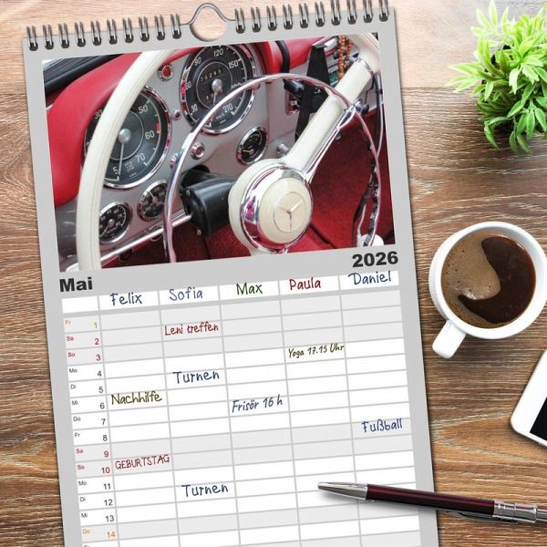übersichtlicher Familienkalender mit 5 Spalten für bis zu 5 Personen für mehr Struktur im Alltag - so bleiben alle Termine im Blick!ÜBERSICHTLICH - mit farblich getrennten Wochen- und Feiertagen. Die einzelnen Felder bieten genügend Platz für Eintragungen. So macht Organisieren Spaß!FANTASTISCHE BILDER - Dieser Planer ist nicht nur eine nützliche Hilfe im Alltag, sondern schmückt gleichzeitig Ihr Zuhause. Ideal auch als Geschenk.FÜR ALLE STIFTE GEEIGNET - ganz egal, ob Sie lieber mit Kugelschreiber oder Bleistift schreiben.NACHHALTIG - deutliche Abfallreduzierung durch bedarfsgerechte Einzelstückfertigung, umweltfreundliches FSC-zertifiziertes Papier, Produktion in Deutschland, klimabewusste Logistik.Mercedes Benz Oldtimer von Autor(in): Kati Lantzsch