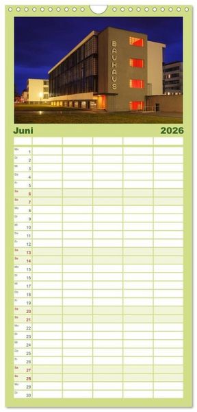 PRAKTISCH - übersichtlicher Familienkalender mit 5 Spalten für bis zu 5 Personen für mehr Struktur im Alltag - so bleiben alle Termine im Blick!ÜBERSICHTLICH - mit farblich getrennten Wochen- und Feiertagen. Die einzelnen Felder bieten genügend Platz für Eintragungen. So macht Organisieren Spaß!FANTASTISCHE BILDER - Dieser Planer ist nicht nur eine nützliche Hilfe im Alltag, sondern schmückt gleichzeitig Ihr Zuhause. Ideal auch als Geschenk.FÜR ALLE STIFTE GEEIGNET - ganz egal, ob Sie lieber mit Kugelschreiber oder Bleistift schreiben.NACHHALTIG - deutliche Abfallreduzierung durch bedarfsgerechte Einzelstückfertigung, umweltfreundliches FSC-zertifiziertes Papier, Produktion in Deutschland, klimabewusste Logistik.Dessau mit seinen Parks und der Bauhaus-Architektur von Autor(in): Thomas Polske