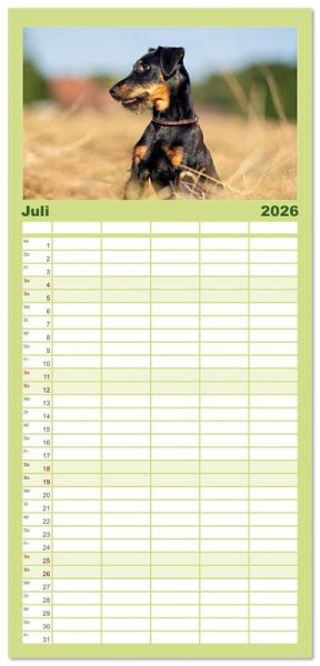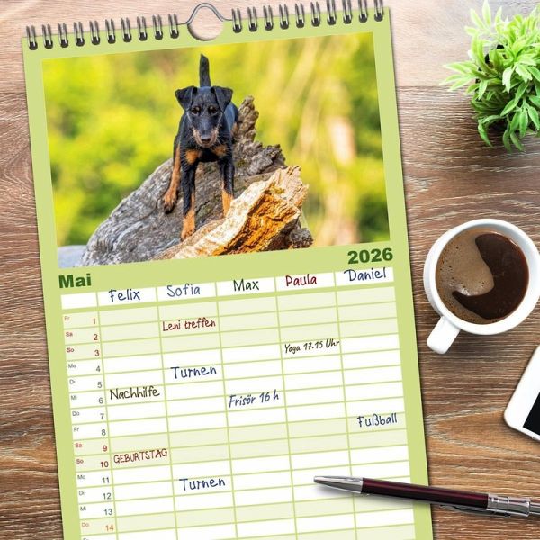 PRAKTISCH - übersichtlicher Familienkalender mit 5 Spalten für bis zu 5 Personen für mehr Struktur im Alltag - so bleiben alle Termine im Blick!ÜBERSICHTLICH - mit farblich getrennten Wochen- und Feiertagen. Die einzelnen Felder bieten genügend Platz für Eintragungen. So macht Organisieren Spaß!FANTASTISCHE BILDER - Dieser Planer ist nicht nur eine nützliche Hilfe im Alltag, sondern schmückt gleichzeitig Ihr Zuhause. Ideal auch als Geschenk.FÜR ALLE STIFTE GEEIGNET - ganz egal, ob Sie lieber mit Kugelschreiber oder Bleistift schreiben.NACHHALTIG - deutliche Abfallreduzierung durch bedarfsgerechte Einzelstückfertigung, umweltfreundliches FSC-zertifiziertes Papier, Produktion in Deutschland, klimabewusste Logistik.Der deutsche Terrier ist ein typischer Jagdhund. von Autor(in): Monika Scheurer