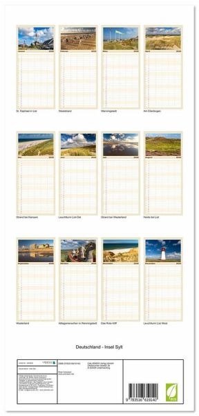 so bleiben alle Termine im Blick!ÜBERSICHTLICH - mit farblich getrennten Wochen- und Feiertagen. Die einzelnen Felder bieten genügend Platz für Eintragungen. So macht Organisieren Spaß!FANTASTISCHE BILDER - Dieser Planer ist nicht nur eine nützliche Hilfe im Alltag, sondern schmückt gleichzeitig Ihr Zuhause. Ideal auch als Geschenk.FÜR ALLE STIFTE GEEIGNET - ganz egal, ob Sie lieber mit Kugelschreiber oder Bleistift schreiben.NACHHALTIG - deutliche Abfallreduzierung durch bedarfsgerechte Einzelstückfertigung, umweltfreundliches FSC-zertifiziertes Papier, Produktion in Deutschland, klimabewusste Logistik.Eine wunderbare Reise über eine der schönsten Inseln Deutschlands. von Autor(in): Peter Schickert