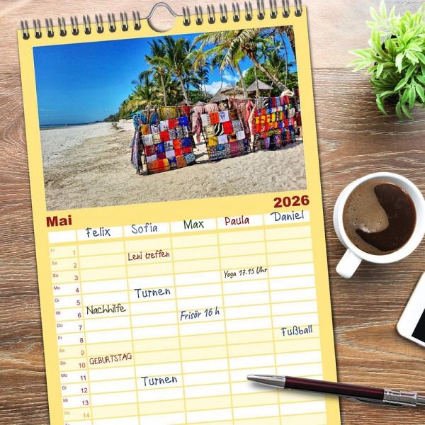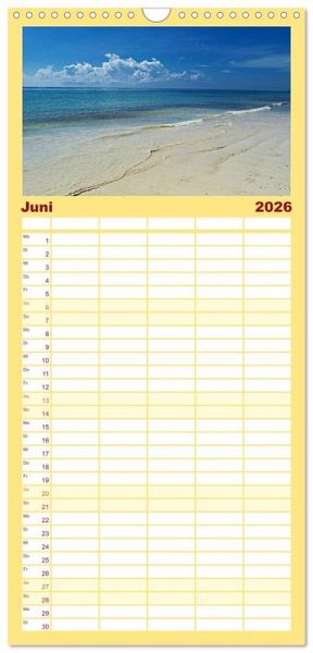 PRAKTISCH - übersichtlicher Familienkalender mit 5 Spalten für bis zu 5 Personen für mehr Struktur im Alltag - so bleiben alle Termine im Blick!ÜBERSICHTLICH - mit farblich getrennten Wochen- und Feiertagen. Die einzelnen Felder bieten genügend Platz für Eintragungen. So macht Organisieren Spaß!FANTASTISCHE BILDER - Dieser Planer ist nicht nur eine nützliche Hilfe im Alltag, sondern schmückt gleichzeitig Ihr Zuhause. Ideal auch als Geschenk.FÜR ALLE STIFTE GEEIGNET - ganz egal, ob Sie lieber mit Kugelschreiber oder Bleistift schreiben.NACHHALTIG - deutliche Abfallreduzierung durch bedarfsgerechte Einzelstückfertigung, umweltfreundliches FSC-zertifiziertes Papier, Produktion in Deutschland, klimabewusste Logistik.Am Meer. Am Strand. Im Herzen. von Autor(in): Susan Michel