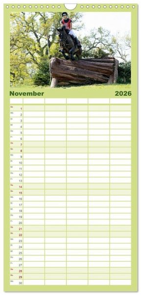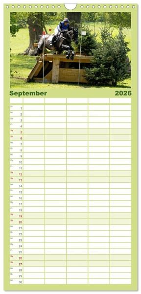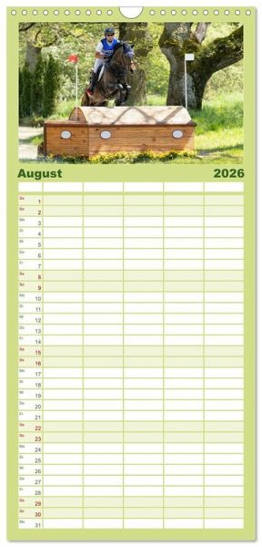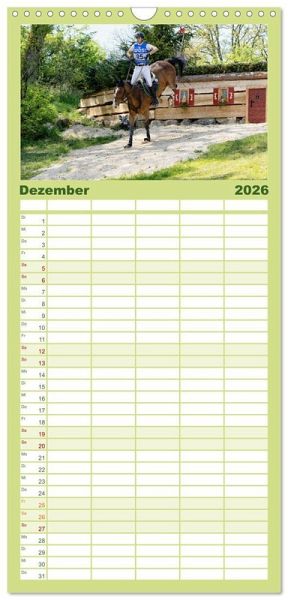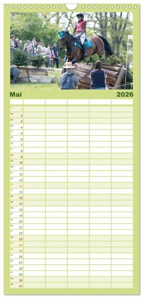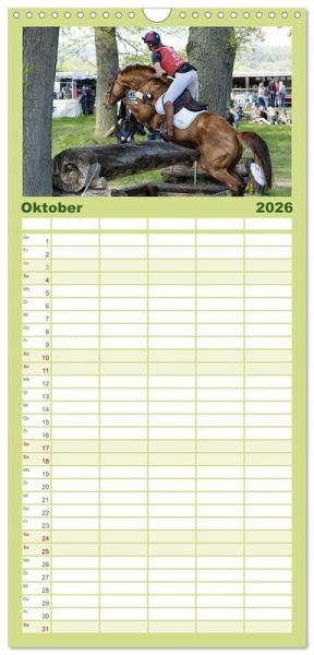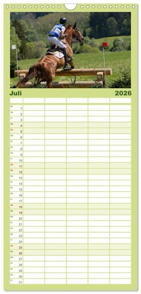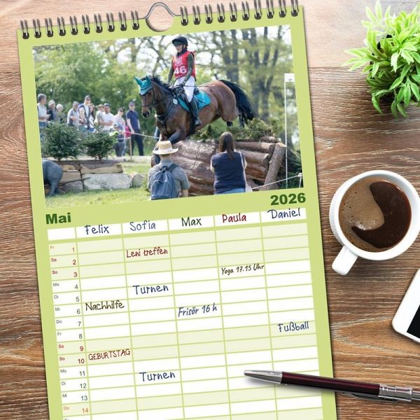 PRAKTISCH - übersichtlicher Familienkalender mit 5 Spalten für bis zu 5 Personen für mehr Struktur im Alltag - so bleiben alle Termine im Blick!ÜBERSICHTLICH - mit farblich getrennten Wochen- und Feiertagen. Die einzelnen Felder bieten genügend Platz für Eintragungen. So macht Organisieren Spaß!FANTASTISCHE BILDER - Dieser Planer ist nicht nur eine nützliche Hilfe im Alltag, sondern schmückt gleichzeitig Ihr Zuhause. Ideal auch als Geschenk.FÜR ALLE STIFTE GEEIGNET - ganz egal, ob Sie lieber mit Kugelschreiber oder Bleistift schreiben.NACHHALTIG - deutliche Abfallreduzierung durch bedarfsgerechte Einzelstückfertigung, umweltfreundliches FSC-zertifiziertes Papier, Produktion in Deutschland, klimabewusste Logistik.Die Vielseitigkeit gehört zum Pferdesport. von Autor(in): Marion Sixt
