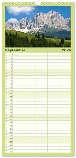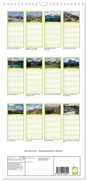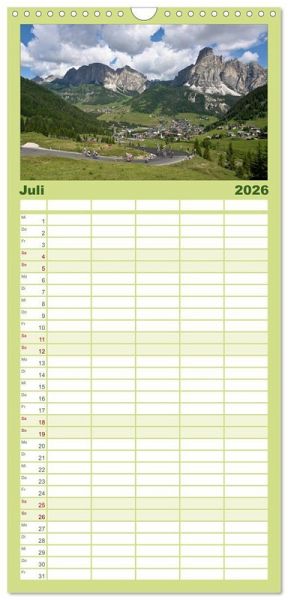 PRAKTISCH - übersichtlicher Familienkalender mit 5 Spalten für bis zu 5 Personen für mehr Struktur im Alltag - so bleiben alle Termine im Blick!ÜBERSICHTLICH - mit farblich getrennten Wochen- und Feiertagen. Die einzelnen Felder bieten genügend Platz für Eintragungen. So macht Organisieren Spaß!FANTASTISCHE BILDER - Dieser Planer ist nicht nur eine nützliche Hilfe im Alltag, sondern schmückt gleichzeitig Ihr Zuhause. Ideal auch als Geschenk.FÜR ALLE STIFTE GEEIGNET - ganz egal, ob Sie lieber mit Kugelschreiber oder Bleistift schreiben.NACHHALTIG - deutliche Abfallreduzierung durch bedarfsgerechte Einzelstückfertigung, umweltfreundliches FSC-zertifiziertes Papier, Produktion in Deutschland, klimabewusste Logistik.Die Dolomiten - einzigartig schöne Bergwelt, erlebnisreich und entspannend. von Autor(in): Joachim Barig