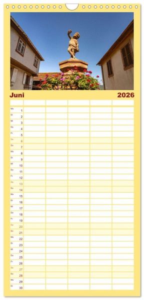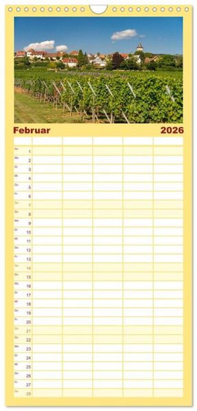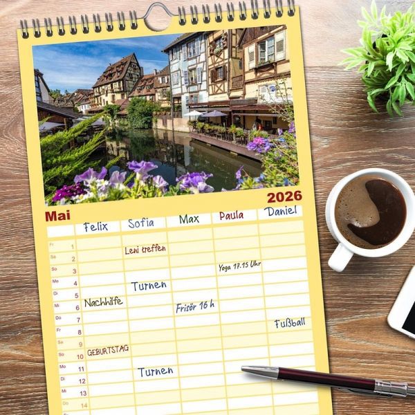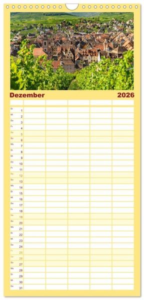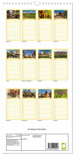 r>PRAKTISCH - übersichtlicher Familienkalender mit 5 Spalten für bis zu 5 Personen für mehr Struktur im Alltag - so bleiben alle Termine im Blick!ÜBERSICHTLICH - mit farblich getrennten Wochen- und Feiertagen. Die einzelnen Felder bieten genügend Platz für Eintragungen. So macht Organisieren Spaß!FANTASTISCHE BILDER - Dieser Planer ist nicht nur eine nützliche Hilfe im Alltag, sondern schmückt gleichzeitig Ihr Zuhause. Ideal auch als Geschenk.FÜR ALLE STIFTE GEEIGNET - ganz egal, ob Sie lieber mit Kugelschreiber oder Bleistift schreiben.NACHHALTIG - deutliche Abfallreduzierung durch bedarfsgerechte Einzelstückfertigung, umweltfreundliches FSC-zertifiziertes Papier, Produktion in Deutschland, klimabewusste Logistik.Eine wunderbare Reise durch die schönsten Dörfer der Elsässer Weinstraße. von Autor(in): Peter Schickert