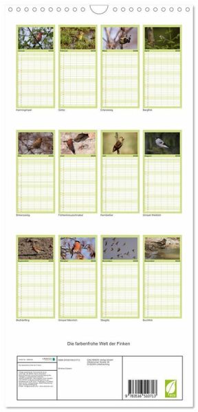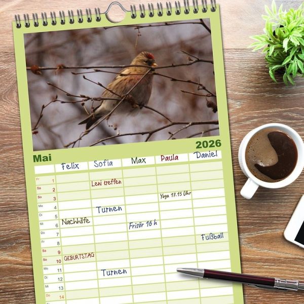 r bis zu 5 Personen für mehr Struktur im Alltag - so bleiben alle Termine im Blick!ÜBERSICHTLICH - mit farblich getrennten Wochen- und Feiertagen. Die einzelnen Felder bieten genügend Platz für Eintragungen. So macht Organisieren Spaß!FANTASTISCHE BILDER - Dieser Planer ist nicht nur eine nützliche Hilfe im Alltag, sondern schmückt gleichzeitig Ihr Zuhause. Ideal auch als Geschenk.FÜR ALLE STIFTE GEEIGNET - ganz egal, ob Sie lieber mit Kugelschreiber oder Bleistift schreiben.NACHHALTIG - deutliche Abfallreduzierung durch bedarfsgerechte Einzelstückfertigung, umweltfreundliches FSC-zertifiziertes Papier, Produktion in Deutschland, klimabewusste Logistik.Einblicke in die Welt der Finken von Autor(in): Winfried Erlwein