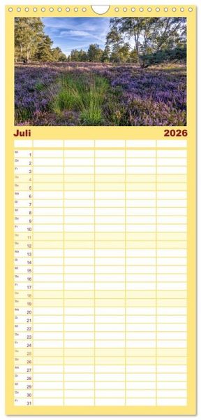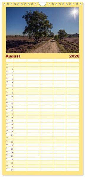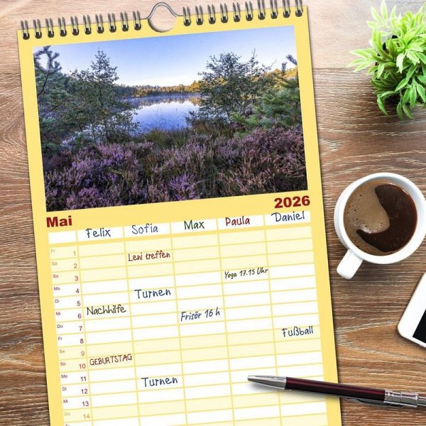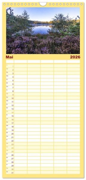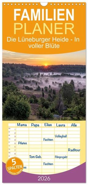 AKTISCH - übersichtlicher Familienkalender mit 5 Spalten für bis zu 5 Personen für mehr Struktur im Alltag - so bleiben alle Termine im Blick!ÜBERSICHTLICH - mit farblich getrennten Wochen- und Feiertagen. Die einzelnen Felder bieten genügend Platz für Eintragungen. So macht Organisieren Spaß!FANTASTISCHE BILDER - Dieser Planer ist nicht nur eine nützliche Hilfe im Alltag, sondern schmückt gleichzeitig Ihr Zuhause. Ideal auch als Geschenk.FÜR ALLE STIFTE GEEIGNET - ganz egal, ob Sie lieber mit Kugelschreiber oder Bleistift schreiben.NACHHALTIG - deutliche Abfallreduzierung durch bedarfsgerechte Einzelstückfertigung, umweltfreundliches FSC-zertifiziertes Papier, Produktion in Deutschland, klimabewusste Logistik.Tauche sie ein in die atemberaubende Schönheit der Landschaften in der Lüneburger Heide! von Autor(in): Andreas Kretschmar
