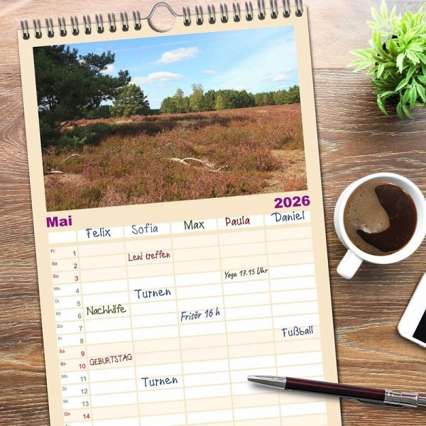für bis zu 5 Personen für mehr Struktur im Alltag - so bleiben alle Termine im Blick!ÜBERSICHTLICH - mit farblich getrennten Wochen- und Feiertagen. Die einzelnen Felder bieten genügend Platz für Eintragungen. So macht Organisieren Spaß!FANTASTISCHE BILDER - Dieser Planer ist nicht nur eine nützliche Hilfe im Alltag, sondern schmückt gleichzeitig Ihr Zuhause. Ideal auch als Geschenk.FÜR ALLE STIFTE GEEIGNET - ganz egal, ob Sie lieber mit Kugelschreiber oder Bleistift schreiben.NACHHALTIG - deutliche Abfallreduzierung durch bedarfsgerechte Einzelstückfertigung, umweltfreundliches FSC-zertifiziertes Papier, Produktion in Deutschland, klimabewusste Logistik.Beeindruckende Aufnahmen dieser tollen Landschaft von Autor(in): Anja Bagunk