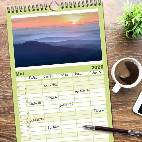 PRAKTISCH - übersichtlicher Familienkalender mit 5 Spalten für bis zu 5 Personen für mehr Struktur im Alltag - so bleiben alle Termine im Blick!ÜBERSICHTLICH - mit farblich getrennten Wochen- und Feiertagen. Die einzelnen Felder bieten genügend Platz für Eintragungen. So macht Organisieren Spaß!FANTASTISCHE BILDER - Dieser Planer ist nicht nur eine nützliche Hilfe im Alltag, sondern schmückt gleichzeitig Ihr Zuhause. Ideal auch als Geschenk.FÜR ALLE STIFTE GEEIGNET - ganz egal, ob Sie lieber mit Kugelschreiber oder Bleistift schreiben.NACHHALTIG - deutliche Abfallreduzierung durch bedarfsgerechte Einzelstückfertigung, umweltfreundliches FSC-zertifiziertes Papier, Produktion in Deutschland, klimabewusste Logistik.Das Mittelgebirge im Dreiländereck von Bayern, Hessen und Thüringen ist wegen seiner einzigartigen Landschaft und Naturausstattung als UNESCO Biosphärenreservat geadelt worden. von Autor(in): Manfred Hempe