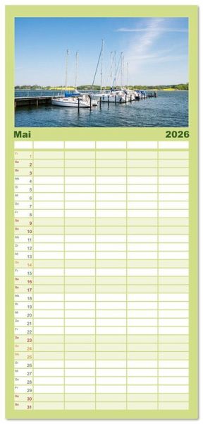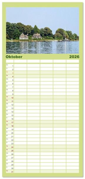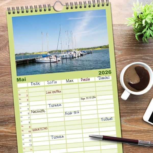 PRAKTISCH - übersichtlicher Familienkalender mit 5 Spalten für bis zu 5 Personen für mehr Struktur im Alltag - so bleiben alle Termine im Blick!ÜBERSICHTLICH - mit farblich getrennten Wochen- und Feiertagen. Die einzelnen Felder bieten genügend Platz für Eintragungen. So macht Organisieren Spaß!FANTASTISCHE BILDER - Dieser Planer ist nicht nur eine nützliche Hilfe im Alltag, sondern schmückt gleichzeitig Ihr Zuhause. Ideal auch als Geschenk.FÜR ALLE STIFTE GEEIGNET - ganz egal, ob Sie lieber mit Kugelschreiber oder Bleistift schreiben.NACHHALTIG - deutliche Abfallreduzierung durch bedarfsgerechte Einzelstückfertigung, umweltfreundliches FSC-zertifiziertes Papier, Produktion in Deutschland, klimabewusste Logistik.Impressionen vom Ostseefjord Schlei, mit seinen idyllischen Dörfern und malerischen Landschaften. von Autor(in): Ralph Kerpa