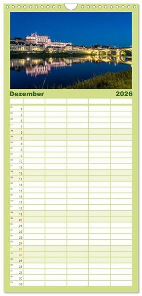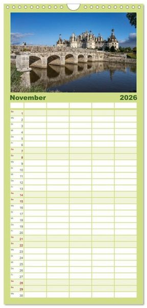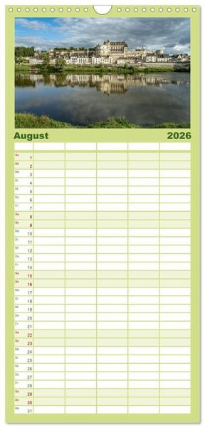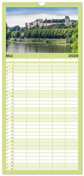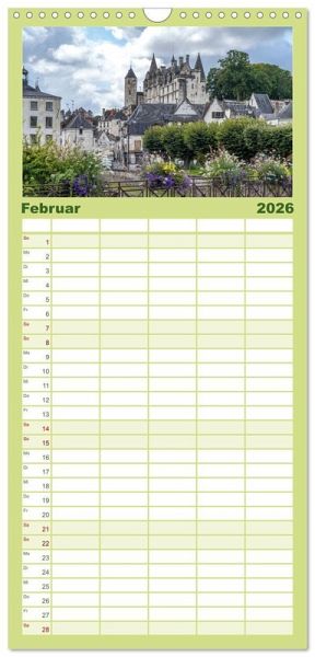 PRAKTISCH - übersichtlicher Familienkalender mit 5 Spalten für bis zu 5 Personen für mehr Struktur im Alltag - so bleiben alle Termine im Blick!ÜBERSICHTLICH - mit farblich getrennten Wochen- und Feiertagen. Die einzelnen Felder bieten genügend Platz für Eintragungen. So macht Organisieren Spaß!FANTASTISCHE BILDER - Dieser Planer ist nicht nur eine nützliche Hilfe im Alltag, sondern schmückt gleichzeitig Ihr Zuhause. Ideal auch als Geschenk.FÜR ALLE STIFTE GEEIGNET - ganz egal, ob Sie lieber mit Kugelschreiber oder Bleistift schreiben.NACHHALTIG - deutliche Abfallreduzierung durch bedarfsgerechte Einzelstückfertigung, umweltfreundliches FSC-zertifiziertes Papier, Produktion in Deutschland, klimabewusste Logistik.Eine wunderbare Reise zu den schönsten Schlössern im Tal der Loire. von Autor(in): Peter Schickert