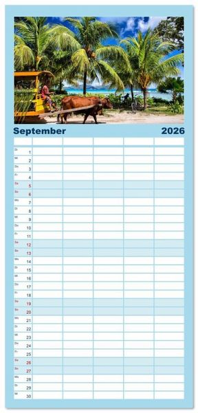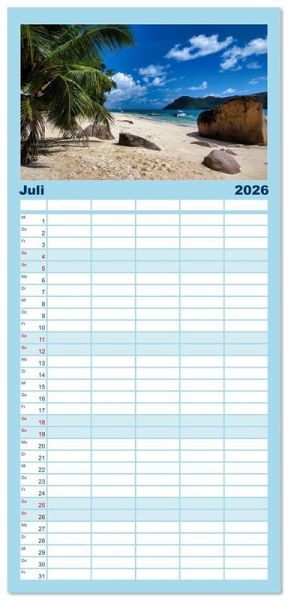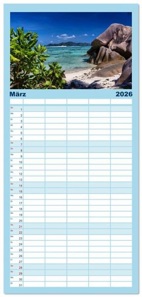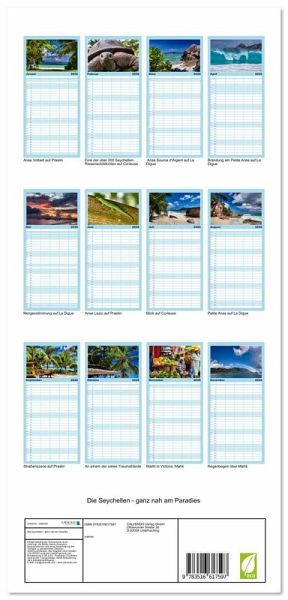 PRAKTISCH - übersichtlicher Familienkalender mit 5 Spalten für bis zu 5 Personen für mehr Struktur im Alltag - so bleiben alle Termine im Blick!ÜBERSICHTLICH - mit farblich getrennten Wochen- und Feiertagen. Die einzelnen Felder bieten genügend Platz für Eintragungen. So macht Organisieren Spaß!FANTASTISCHE BILDER - Dieser Planer ist nicht nur eine nützliche Hilfe im Alltag, sondern schmückt gleichzeitig Ihr Zuhause. Ideal auch als Geschenk.FÜR ALLE STIFTE GEEIGNET - ganz egal, ob Sie lieber mit Kugelschreiber oder Bleistift schreiben.NACHHALTIG - deutliche Abfallreduzierung durch bedarfsgerechte Einzelstückfertigung, umweltfreundliches FSC-zertifiziertes Papier, Produktion in Deutschland, klimabewusste Logistik.Die Seychellen sind mit ihrer Naturvielfalt ein atemberaubendes Paradies, das einem durch die Geologie aber zum Glück manche Ausflugsentscheidung abnimmt. von Autor(in): rsiemer