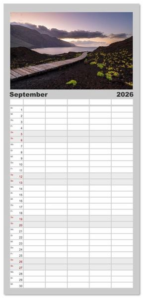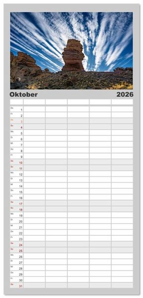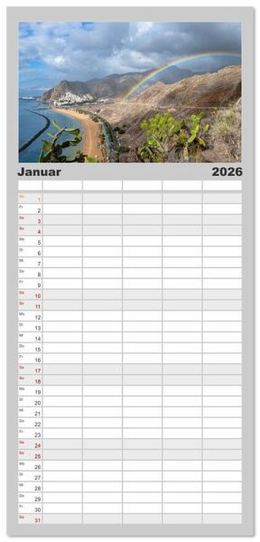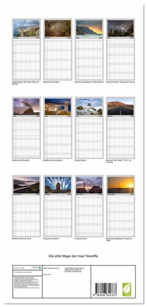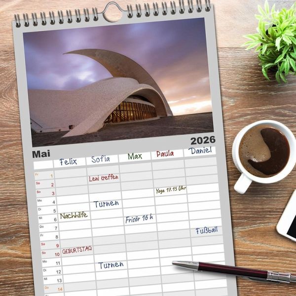 TISCH - übersichtlicher Familienkalender mit 5 Spalten für bis zu 5 Personen für mehr Struktur im Alltag - so bleiben alle Termine im Blick!ÜBERSICHTLICH - mit farblich getrennten Wochen- und Feiertagen. Die einzelnen Felder bieten genügend Platz für Eintragungen. So macht Organisieren Spaß!FANTASTISCHE BILDER - Dieser Planer ist nicht nur eine nützliche Hilfe im Alltag, sondern schmückt gleichzeitig Ihr Zuhause. Ideal auch als Geschenk.FÜR ALLE STIFTE GEEIGNET - ganz egal, ob Sie lieber mit Kugelschreiber oder Bleistift schreiben.NACHHALTIG - deutliche Abfallreduzierung durch bedarfsgerechte Einzelstückfertigung, umweltfreundliches FSC-zertifiziertes Papier, Produktion in Deutschland, klimabewusste Logistik.Wundervolle Aufnahmen einzigartiger Perspektiven der Insel Teneriffa von Autor(in): Denis Feiner