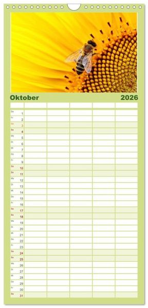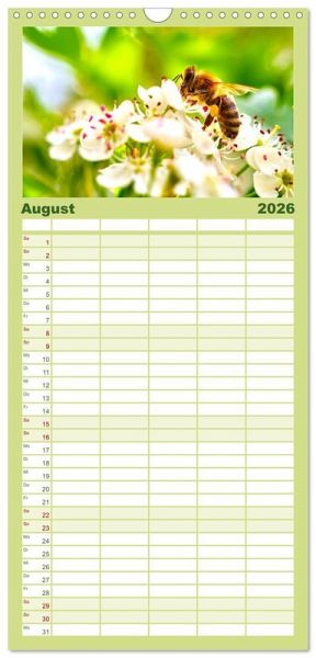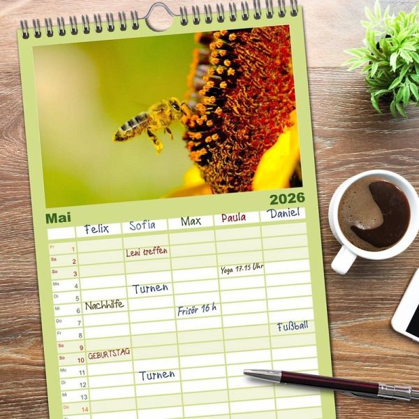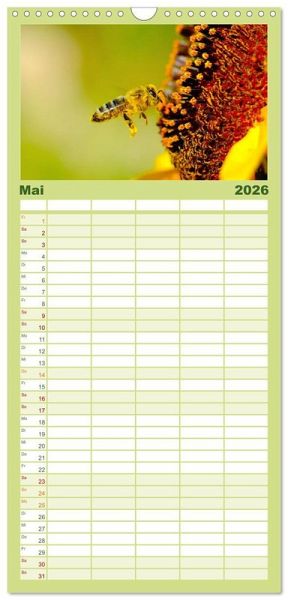 rsichtlicher Familienkalender mit 5 Spalten für bis zu 5 Personen für mehr Struktur im Alltag - so bleiben alle Termine im Blick!ÜBERSICHTLICH - mit farblich getrennten Wochen- und Feiertagen. Die einzelnen Felder bieten genügend Platz für Eintragungen. So macht Organisieren Spaß!FANTASTISCHE BILDER - Dieser Planer ist nicht nur eine nützliche Hilfe im Alltag, sondern schmückt gleichzeitig Ihr Zuhause. Ideal auch als Geschenk.FÜR ALLE STIFTE GEEIGNET - ganz egal, ob Sie lieber mit Kugelschreiber oder Bleistift schreiben.NACHHALTIG - deutliche Abfallreduzierung durch bedarfsgerechte Einzelstückfertigung, umweltfreundliches FSC-zertifiziertes Papier, Produktion in Deutschland, klimabewusste Logistik.Die summenden Bestäuber. von Autor(in): Happy Monkey