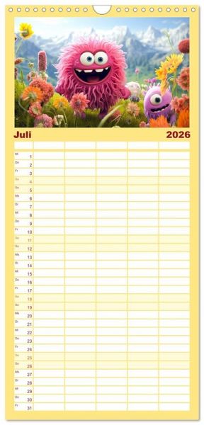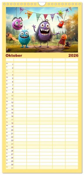 rmine im Blick!ÜBERSICHTLICH - mit farblich getrennten Wochen- und Feiertagen. Die einzelnen Felder bieten genügend Platz für Eintragungen. So macht Organisieren Spaß!FANTASTISCHE BILDER - Dieser Planer ist nicht nur eine nützliche Hilfe im Alltag, sondern schmückt gleichzeitig Ihr Zuhause. Ideal auch als Geschenk.FÜR ALLE STIFTE GEEIGNET - ganz egal, ob Sie lieber mit Kugelschreiber oder Bleistift schreiben.NACHHALTIG - deutliche Abfallreduzierung durch bedarfsgerechte Einzelstückfertigung, umweltfreundliches FSC-zertifiziertes Papier, Produktion in Deutschland, klimabewusste Logistik.Verpasse nicht das lustige Chaos mit den kleinen Monstern. von Autor(in): Dirk Meutzner