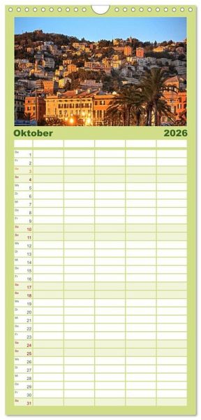 PRAKTISCH - übersichtlicher Familienkalender mit 5 Spalten für bis zu 5 Personen für mehr Struktur im Alltag - so bleiben alle Termine im Blick!ÜBERSICHTLICH - mit farblich getrennten Wochen- und Feiertagen. Die einzelnen Felder bieten genügend Platz für Eintragungen. So macht Organisieren Spaß!FANTASTISCHE BILDER - Dieser Planer ist nicht nur eine nützliche Hilfe im Alltag, sondern schmückt gleichzeitig Ihr Zuhause. Ideal auch als Geschenk.FÜR ALLE STIFTE GEEIGNET - ganz egal, ob Sie lieber mit Kugelschreiber oder Bleistift schreiben.NACHHALTIG - deutliche Abfallreduzierung durch bedarfsgerechte Einzelstückfertigung, umweltfreundliches FSC-zertifiziertes Papier, Produktion in Deutschland, klimabewusste Logistik.Entdecke die faszinierende Schönheit Genuas von Autor(in): Bernd Zillich