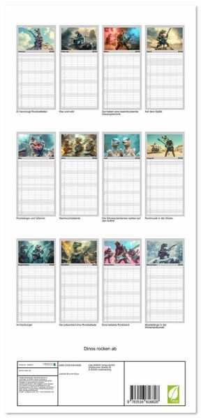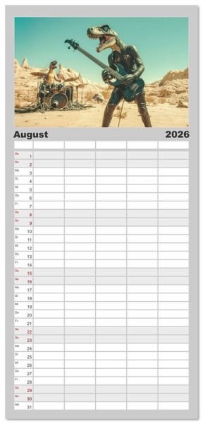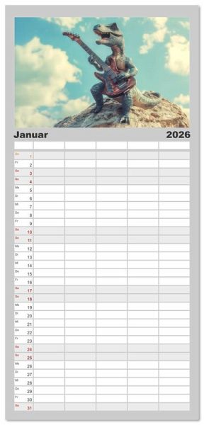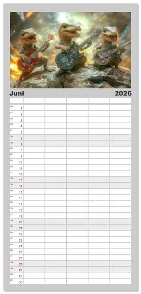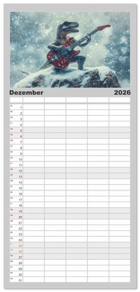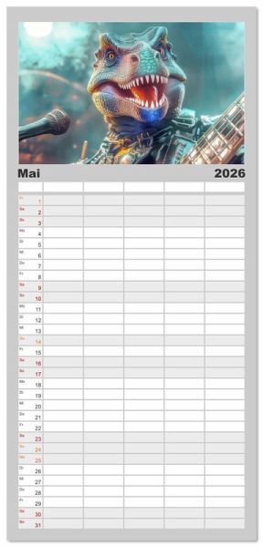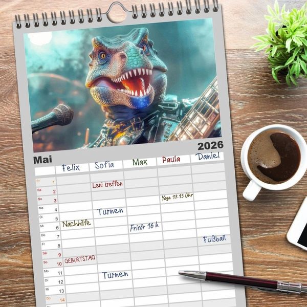 PRAKTISCH - übersichtlicher Familienkalender mit 5 Spalten für bis zu 5 Personen für mehr Struktur im Alltag - so bleiben alle Termine im Blick!ÜBERSICHTLICH - mit farblich getrennten Wochen- und Feiertagen. Die einzelnen Felder bieten genügend Platz für Eintragungen. So macht Organisieren Spaß!FANTASTISCHE BILDER - Dieser Planer ist nicht nur eine nützliche Hilfe im Alltag, sondern schmückt gleichzeitig Ihr Zuhause. Ideal auch als Geschenk.FÜR ALLE STIFTE GEEIGNET - ganz egal, ob Sie lieber mit Kugelschreiber oder Bleistift schreiben.NACHHALTIG - deutliche Abfallreduzierung durch bedarfsgerechte Einzelstückfertigung, umweltfreundliches FSC-zertifiziertes Papier, Produktion in Deutschland, klimabewusste Logistik.Dinosaurier im Musikfieber von Autor(in): Liselotte Brunner-Klaus