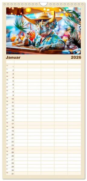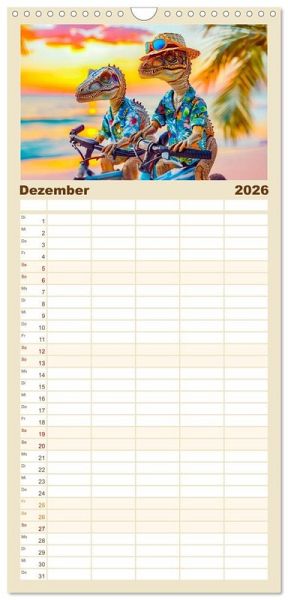 PRAKTISCH - übersichtlicher Familienkalender mit 5 Spalten für bis zu 5 Personen für mehr Struktur im Alltag - so bleiben alle Termine im Blick!ÜBERSICHTLICH - mit farblich getrennten Wochen- und Feiertagen. Die einzelnen Felder bieten genügend Platz für Eintragungen. So macht Organisieren Spaß!FANTASTISCHE BILDER - Dieser Planer ist nicht nur eine nützliche Hilfe im Alltag, sondern schmückt gleichzeitig Ihr Zuhause. Ideal auch als Geschenk.FÜR ALLE STIFTE GEEIGNET - ganz egal, ob Sie lieber mit Kugelschreiber oder Bleistift schreiben.NACHHALTIG - deutliche Abfallreduzierung durch bedarfsgerechte Einzelstückfertigung, umweltfreundliches FSC-zertifiziertes Papier, Produktion in Deutschland, klimabewusste Logistik.Ein witziger Kalender mit urzeitlich guter Sommerlaune von Autor(in): Anja Frost