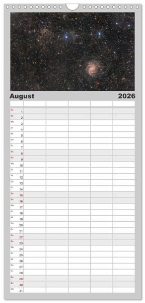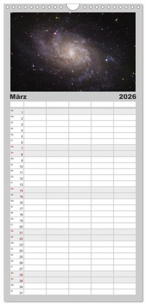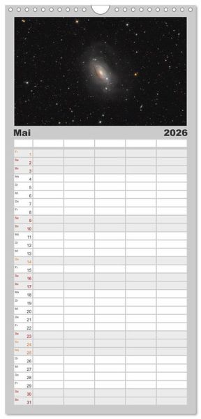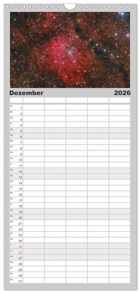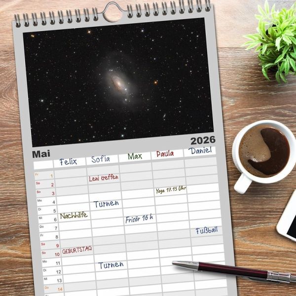 PRAKTISCH - übersichtlicher Familienkalender mit 5 Spalten für bis zu 5 Personen für mehr Struktur im Alltag - so bleiben alle Termine im Blick!ÜBERSICHTLICH - mit farblich getrennten Wochen- und Feiertagen. Die einzelnen Felder bieten genügend Platz für Eintragungen. So macht Organisieren Spaß!FANTASTISCHE BILDER - Dieser Planer ist nicht nur eine nützliche Hilfe im Alltag, sondern schmückt gleichzeitig Ihr Zuhause. Ideal auch als Geschenk.FÜR ALLE STIFTE GEEIGNET - ganz egal, ob Sie lieber mit Kugelschreiber oder Bleistift schreiben.NACHHALTIG - deutliche Abfallreduzierung durch bedarfsgerechte Einzelstückfertigung, umweltfreundliches FSC-zertifiziertes Papier, Produktion in Deutschland, klimabewusste Logistik.Atemberaubende Astrofotografien, welche dich auf eine visuelle Reise durch die Galaxien entführen. von Autor(in): Julian Zoller