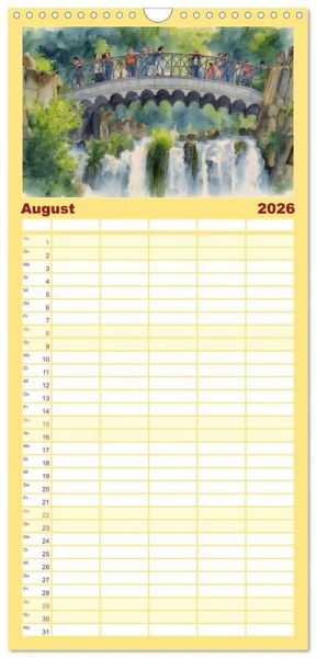 PRAKTISCH - übersichtlicher Familienkalender mit 5 Spalten für bis zu 5 Personen für mehr Struktur im Alltag - so bleiben alle Termine im Blick!ÜBERSICHTLICH - mit farblich getrennten Wochen- und Feiertagen. Die einzelnen Felder bieten genügend Platz für Eintragungen. So macht Organisieren Spaß!FANTASTISCHE BILDER - Dieser Planer ist nicht nur eine nützliche Hilfe im Alltag, sondern schmückt gleichzeitig Ihr Zuhause. Ideal auch als Geschenk.FÜR ALLE STIFTE GEEIGNET - ganz egal, ob Sie lieber mit Kugelschreiber oder Bleistift schreiben.NACHHALTIG - deutliche Abfallreduzierung durch bedarfsgerechte Einzelstückfertigung, umweltfreundliches FSC-zertifiziertes Papier, Produktion in Deutschland, klimabewusste Logistik.Tradition und Moderne im Aquarellstil von Autor(in): Claudia Kleemann