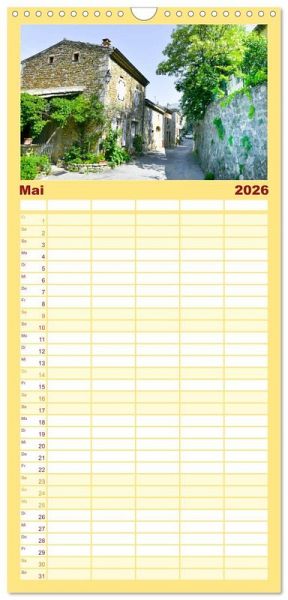 PRAKTISCH - übersichtlicher Familienkalender mit 5 Spalten für bis zu 5 Personen für mehr Struktur im Alltag - so bleiben alle Termine im Blick!ÜBERSICHTLICH - mit farblich getrennten Wochen- und Feiertagen. Die einzelnen Felder bieten genügend Platz für Eintragungen. So macht Organisieren Spaß!FANTASTISCHE BILDER - Dieser Planer ist nicht nur eine nützliche Hilfe im Alltag, sondern schmückt gleichzeitig Ihr Zuhause. Ideal auch als Geschenk.FÜR ALLE STIFTE GEEIGNET - ganz egal, ob Sie lieber mit Kugelschreiber oder Bleistift schreiben.NACHHALTIG - deutliche Abfallreduzierung durch bedarfsgerechte Einzelstückfertigung, umweltfreundliches FSC-zertifiziertes Papier, Produktion in Deutschland, klimabewusste Logistik.Mittelalterliche Gassen, Fachwerk und blumengeschmückte Häuser in wunderschöner Umgebung - das sind Frankreichs idyllische Dörfer von Autor(in): Midgardson