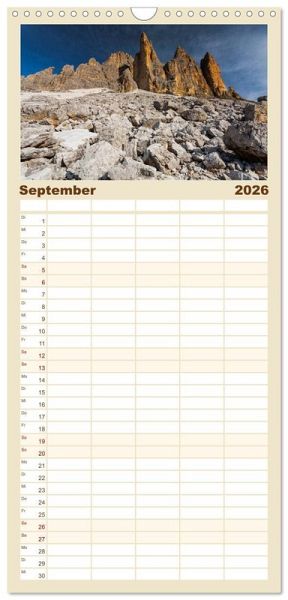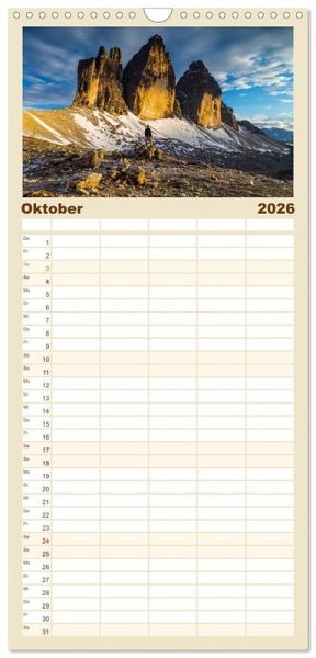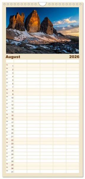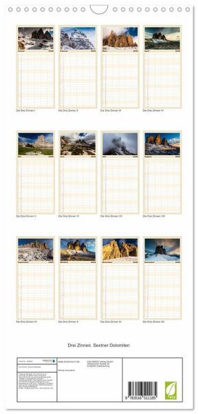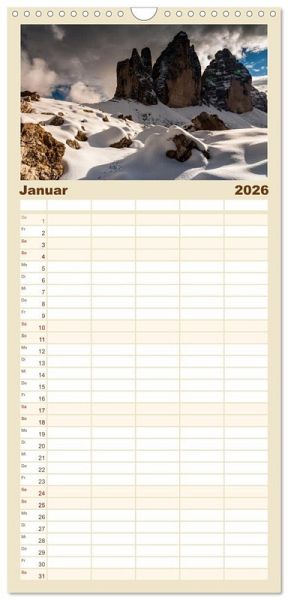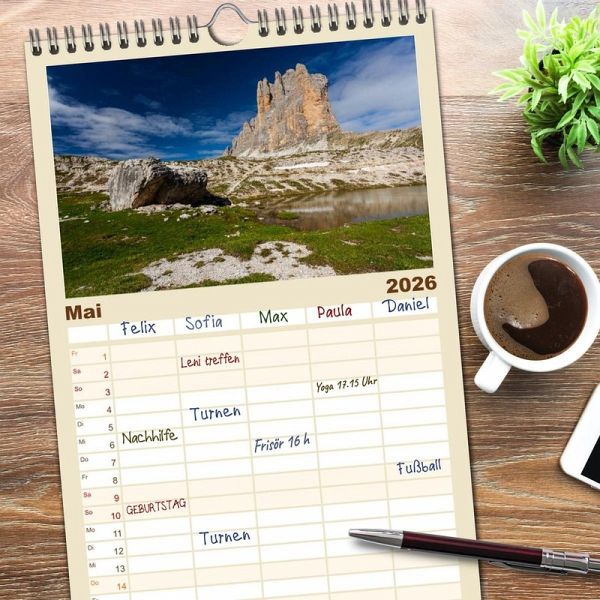 enkalender mit 5 Spalten für bis zu 5 Personen für mehr Struktur im Alltag - so bleiben alle Termine im Blick!ÜBERSICHTLICH - mit farblich getrennten Wochen- und Feiertagen. Die einzelnen Felder bieten genügend Platz für Eintragungen. So macht Organisieren Spaß!FANTASTISCHE BILDER - Dieser Planer ist nicht nur eine nützliche Hilfe im Alltag, sondern schmückt gleichzeitig Ihr Zuhause. Ideal auch als Geschenk.FÜR ALLE STIFTE GEEIGNET - ganz egal, ob Sie lieber mit Kugelschreiber oder Bleistift schreiben.NACHHALTIG - deutliche Abfallreduzierung durch bedarfsgerechte Einzelstückfertigung, umweltfreundliches FSC-zertifiziertes Papier, Produktion in Deutschland, klimabewusste Logistik.Drei Zinnen - 4 Jahreszeiten - Wandschmuck für jeden Freund der Berge! von Autor(in): Gospodarek Mikolaj