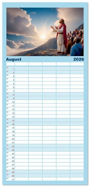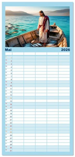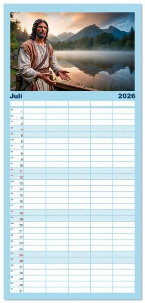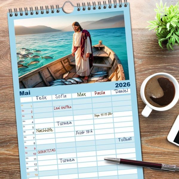 PRAKTISCH - übersichtlicher Familienkalender mit 5 Spalten für bis zu 5 Personen für mehr Struktur im Alltag - so bleiben alle Termine im Blick!ÜBERSICHTLICH - mit farblich getrennten Wochen- und Feiertagen. Die einzelnen Felder bieten genügend Platz für Eintragungen. So macht Organisieren Spaß!FANTASTISCHE BILDER - Dieser Planer ist nicht nur eine nützliche Hilfe im Alltag, sondern schmückt gleichzeitig Ihr Zuhause. Ideal auch als Geschenk.FÜR ALLE STIFTE GEEIGNET - ganz egal, ob Sie lieber mit Kugelschreiber oder Bleistift schreiben.NACHHALTIG - deutliche Abfallreduzierung durch bedarfsgerechte Einzelstückfertigung, umweltfreundliches FSC-zertifiziertes Papier, Produktion in Deutschland, klimabewussteLogistik.KI generierte Bilder mit Stationen in Jesus leben. von Autor(in): Dirk Rosin