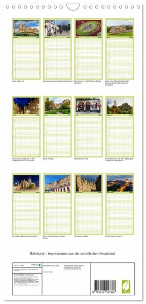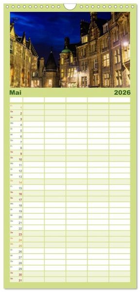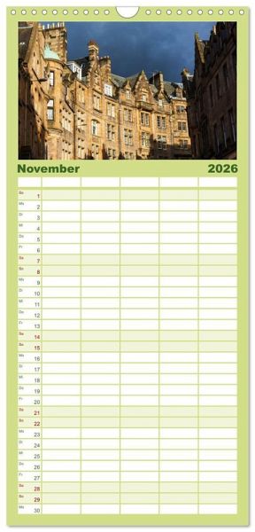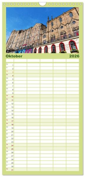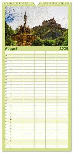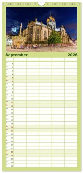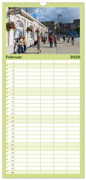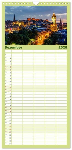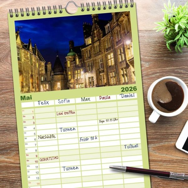 PRAKTISCH - übersichtlicher Familienkalender mit 5 Spalten für bis zu 5 Personen für mehr Struktur im Alltag - so bleiben alle Termine im Blick!ÜBERSICHTLICH - mit farblich getrennten Wochen- und Feiertagen. Die einzelnen Felder bieten genügend Platz für Eintragungen. So macht Organisieren Spaß!FANTASTISCHE BILDER - Dieser Planer ist nicht nur eine nützliche Hilfe im Alltag, sondern schmückt gleichzeitig Ihr Zuhause. Ideal auch als Geschenk.FÜR ALLE STIFTE GEEIGNET - ganz egal, ob Sie lieber mit Kugelschreiber oder Bleistift schreiben.NACHHALTIG - deutliche Abfallreduzierung durch bedarfsgerechte Einzelstückfertigung, umweltfreundliches FSC-zertifiziertes Papier, Produktion in Deutschland, klimabewusste Logistik.Fotos aus Edinburgh von Autor(in): Christian Müller