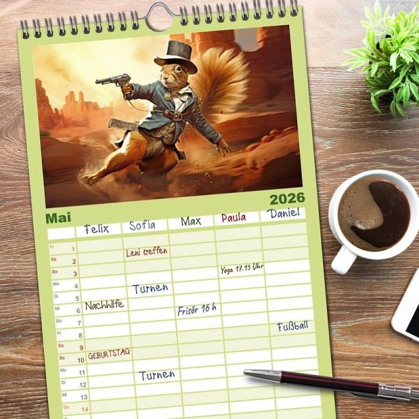 PRAKTISCH - übersichtlicher Familienkalender mit 5 Spalten für bis zu 5 Personen für mehr Struktur im Alltag - so bleiben alle Termine im Blick!ÜBERSICHTLICH - mit farblich getrennten Wochen- und Feiertagen. Die einzelnen Felder bieten genügend Platz für Eintragungen. So macht Organisieren Spaß!FANTASTISCHE BILDER - Dieser Planer ist nicht nur eine nützliche Hilfe im Alltag, sondern schmückt gleichzeitig Ihr Zuhause. Ideal auch als Geschenk.FÜR ALLE STIFTE GEEIGNET - ganz egal, ob Sie lieber mit Kugelschreiber oder Bleistift schreiben.NACHHALTIG - deutliche Abfallreduzierung durch bedarfsgerechte Einzelstückfertigung, umweltfreundliches FSC-zertifiziertes Papier, Produktion in Deutschland, klimabewusste Logistik.Tierisch gute Abenteuer von Autor(in): Liselotte Brunner-Klaus