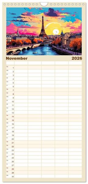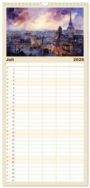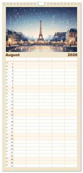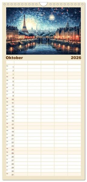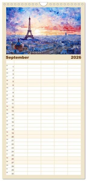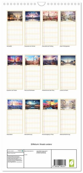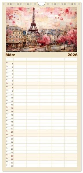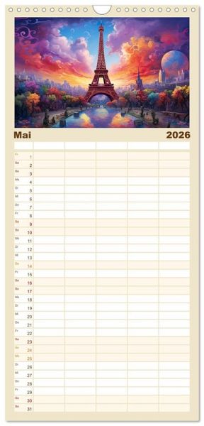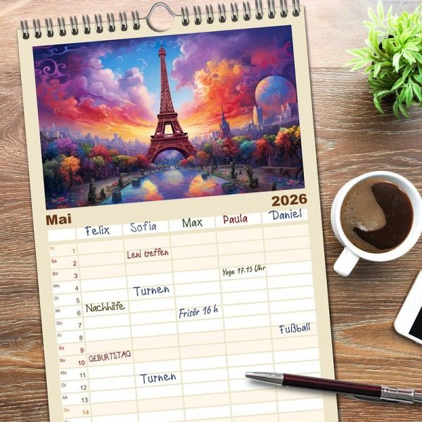 PRAKTISCH - übersichtlicher Familienkalender mit 5 Spalten für bis zu 5 Personen für mehr Struktur im Alltag - so bleiben alle Termine im Blick!ÜBERSICHTLICH - mit farblich getrennten Wochen- und Feiertagen. Die einzelnen Felder bieten genügend Platz für Eintragungen. So macht Organisieren Spaß!FANTASTISCHE BILDER - Dieser Planer ist nicht nur eine nützliche Hilfe im Alltag, sondern schmückt gleichzeitig Ihr Zuhause. Ideal auch als Geschenk.FÜR ALLE STIFTE GEEIGNET - ganz egal, ob Sie lieber mit Kugelschreiber oder Bleistift schreiben.NACHHALTIG - deutliche Abfallreduzierung durch bedarfsgerechte Einzelstückfertigung, umweltfreundliches FSC-zertifiziertes Papier, Produktion in Deutschland, klimabewusste Logistik.Der Eiffelturm in wunderbaren Facetten. von Autor(in): Tina Seidel