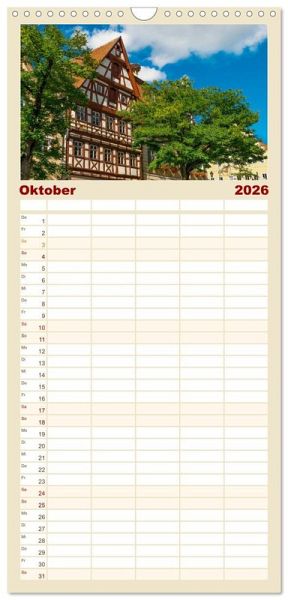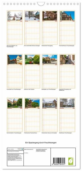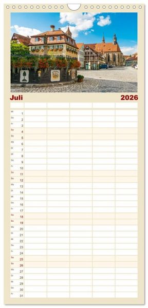 PRAKTISCH - übersichtlicher Familienkalender mit 5 Spalten für bis zu 5 Personen für mehr Struktur im Alltag - so bleiben alle Termine im Blick!ÜBERSICHTLICH - mit farblich getrennten Wochen- und Feiertagen. Die einzelnen Felder bieten genügend Platz für Eintragungen. So macht Organisieren Spaß!FANTASTISCHE BILDER - Dieser Planer ist nicht nur eine nützliche Hilfe im Alltag, sondern schmückt gleichzeitig Ihr Zuhause. Ideal auch als Geschenk.FÜR ALLE STIFTE GEEIGNET - ganz egal, ob Sie lieber mit Kugelschreiber oder Bleistift schreiben.NACHHALTIG - deutliche Abfallreduzierung durch bedarfsgerechte Einzelstückfertigung, umweltfreundliches FSC-zertifiziertes Papier, Produktion in Deutschland, klimabewusste Logistik.Romantisches Feuchtwangen rund ums Jahr von Autor(in): Tina Rabus